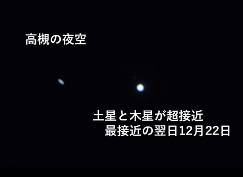 高槻の夜空 木星と土星の大接近の翌日 拡大写真にチャレンジ!今日22日のようす