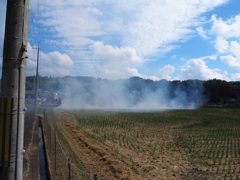 稲刈り後の田焼きを見かけた 2021年秋