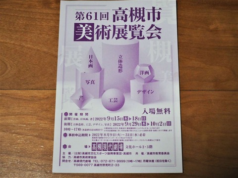 高槻市美術展覧会 前期9月15~18日 後期29日~10月2日で現代劇場で開催予定 2022年