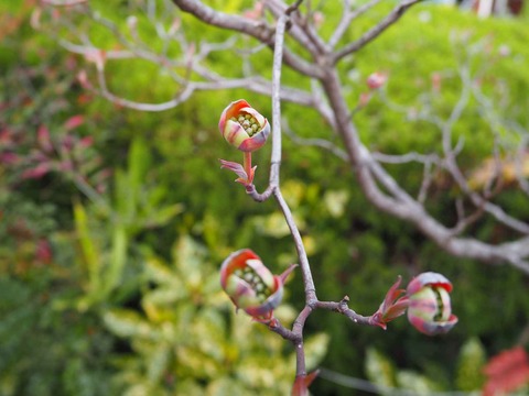 高槻の街かどでハナミズキが開きかけてる 2022年