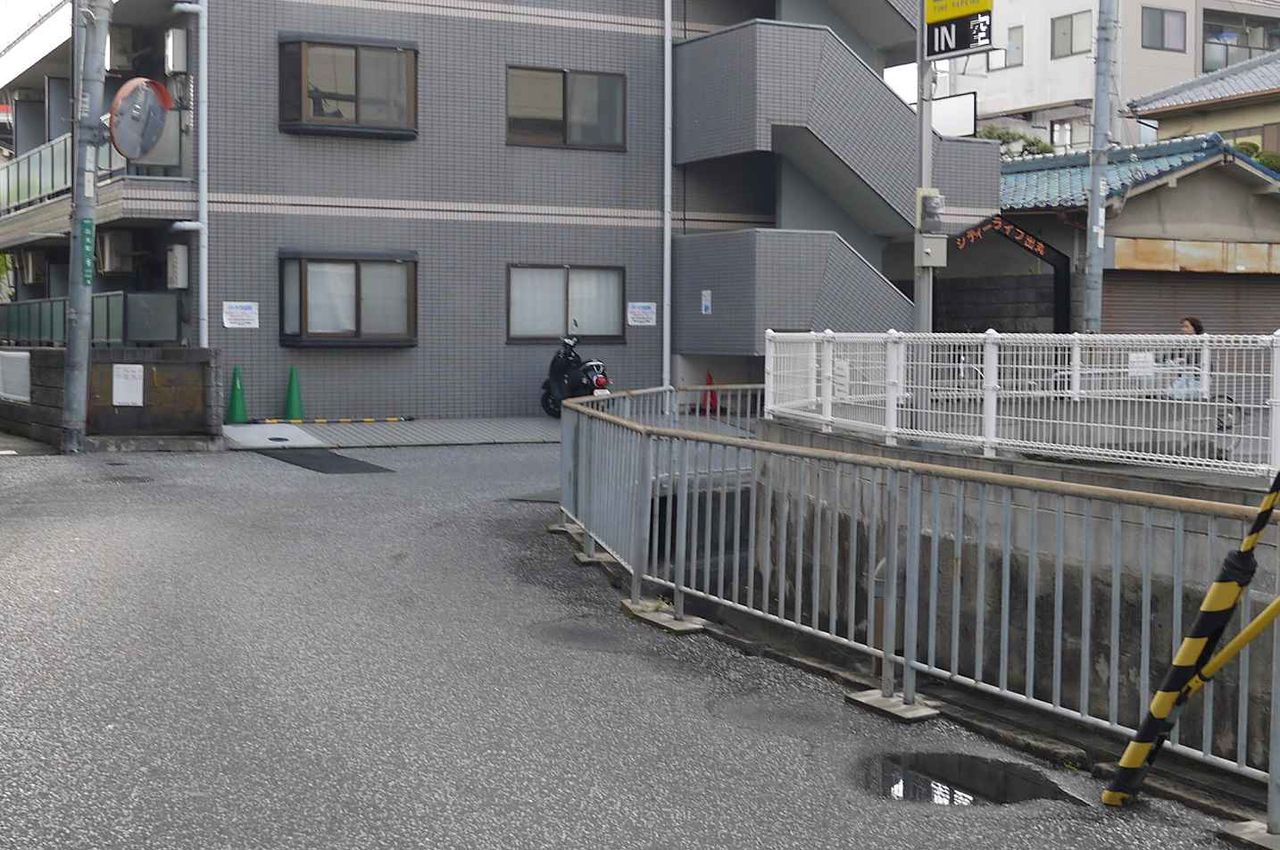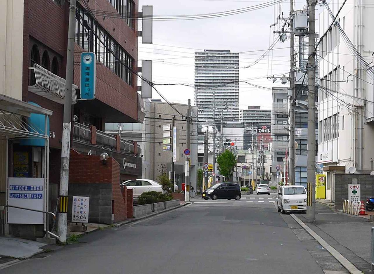 南東端から北上する最初の角、ひよっとするとこの右手にも通路があるのでそちらが外堀通りだったかもしれません。