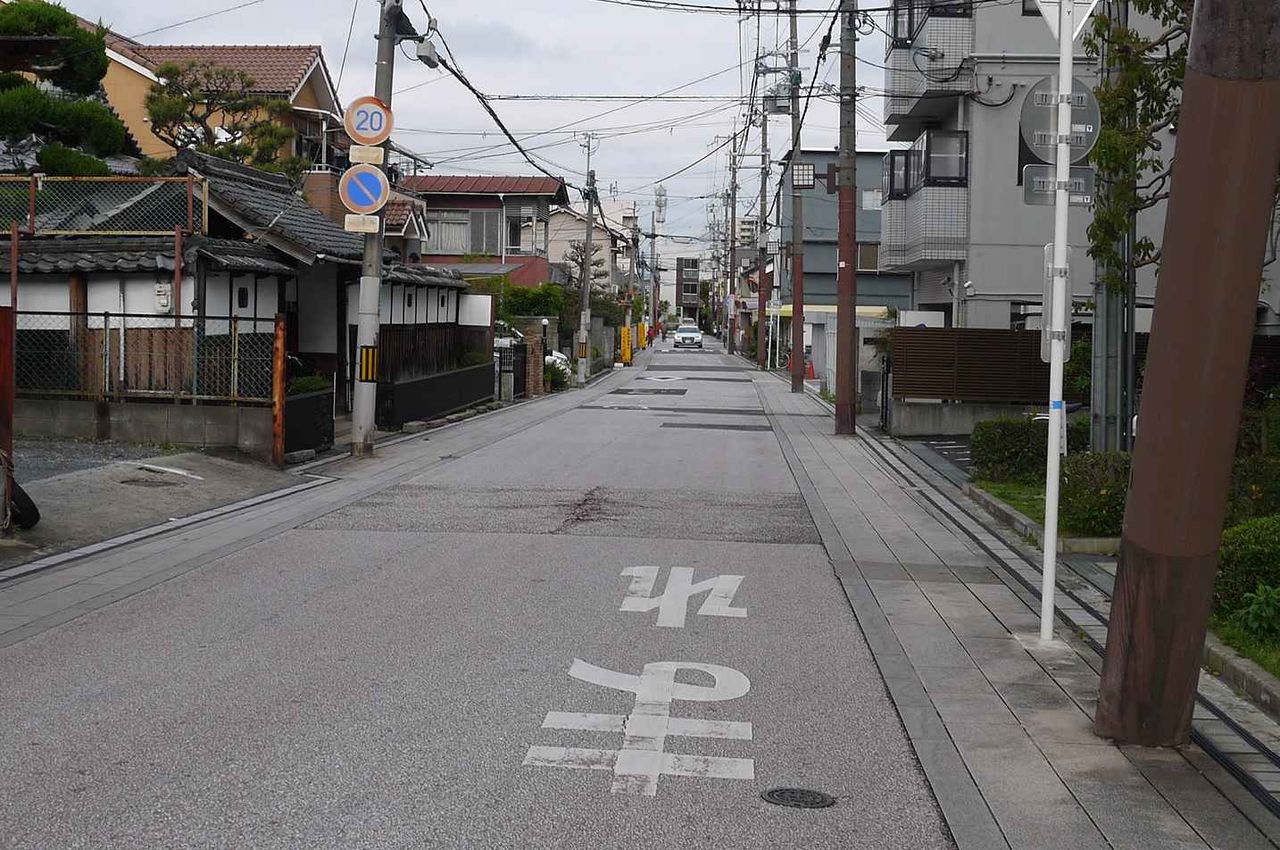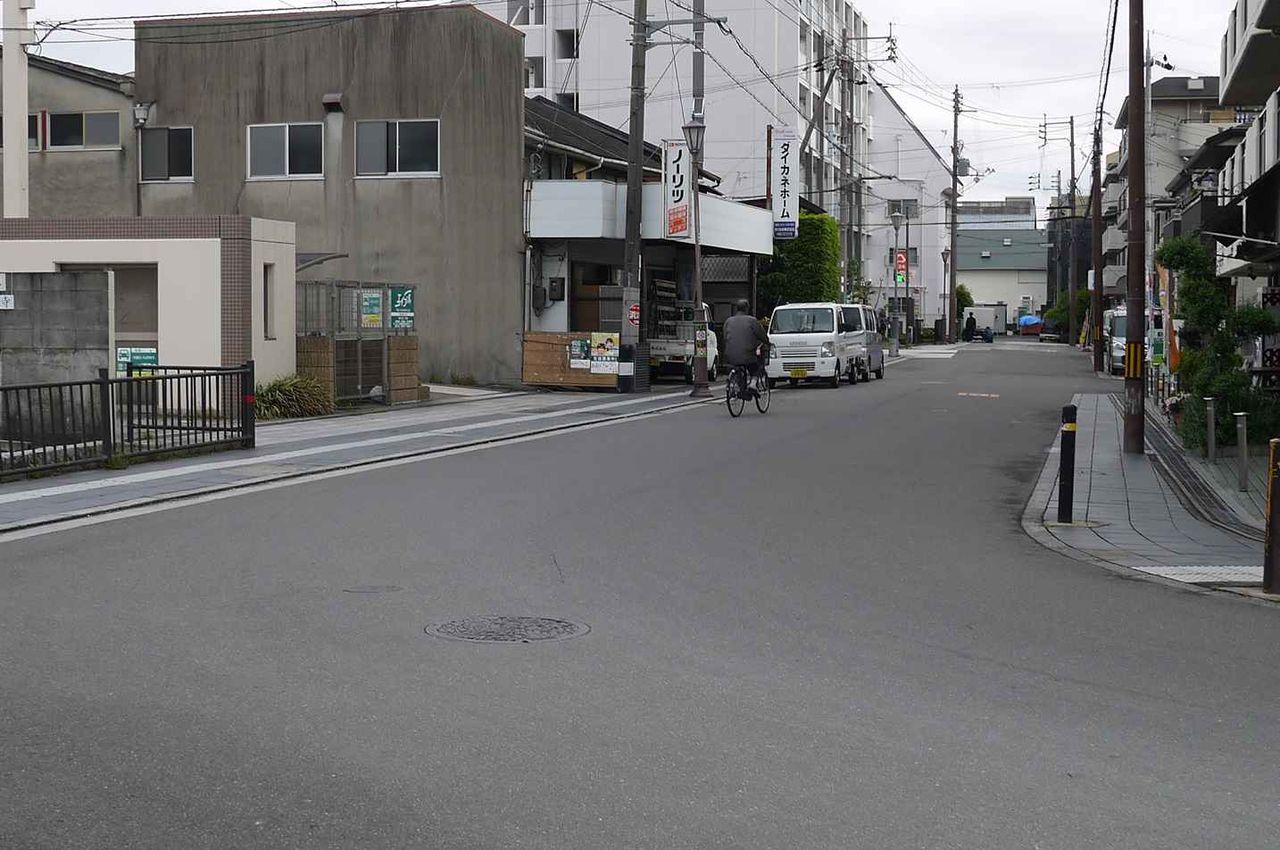 3回目の曲がりを終え4たび北上。171号線があります。旧のお城の北端は171号線で分断されています。右側はお堀だった側。