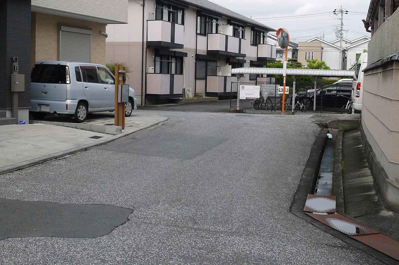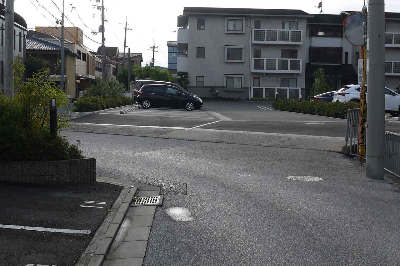 ドラッグストアを左にみてすすむと少し左にカーブして西に進みます。