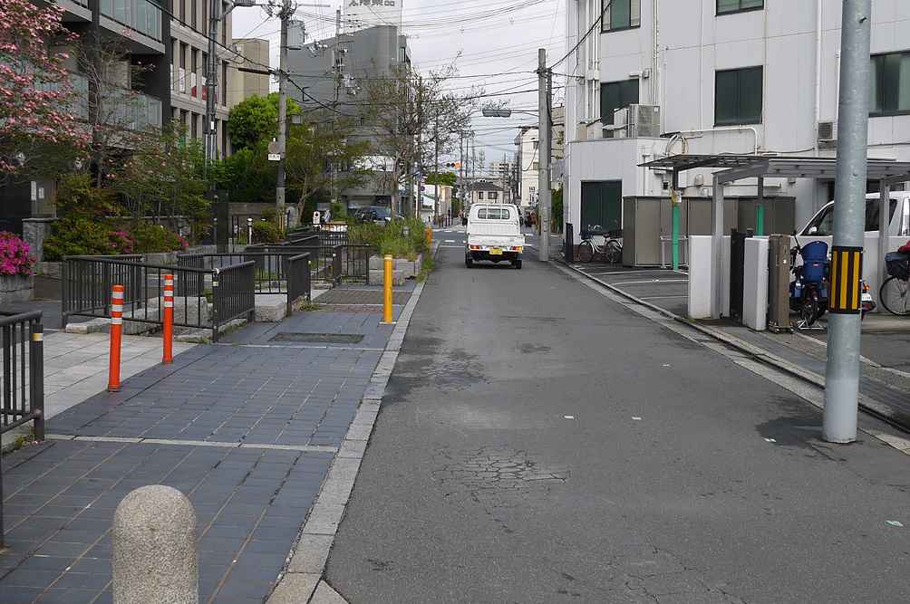 途中左を見ると東向きの道があります。こちらには行きません。この方向は高槻城の六口のひとつ前島口につながります。