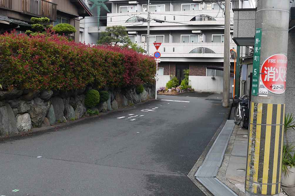 信号を越えて最後の右のまがり都合4回目になりますね。ここを曲がらず直進すると現在古民家の福寿舎のある高槻城の六口のひとつ芥川口にむかいます。