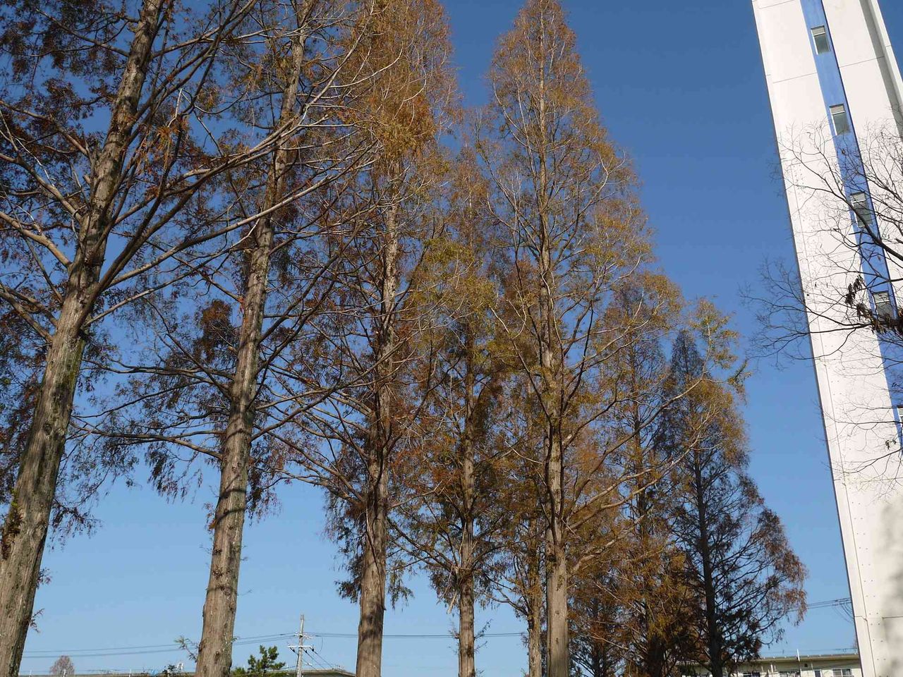 富田団地のメタセコイヤの紅葉はどうなっているのでしょうか?テレビで滋賀県高島市の40年経た500本ものメタセコイヤの並木が紹介されていましたが、高槻も富田団地に多くのメタセコイヤがありますね。